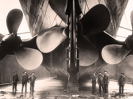 At 2.17 a.m. the Titanic’s huge stern heaved up into the air and the propellers could clearly be seen as the ship became vertical in the sea. The lights flickered and went out. Suddenly Titanic broke apart and began to plunge to the ocean floor.